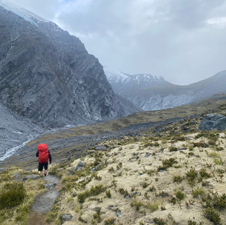 Cascade Saddle Dag drie was de enige dag die wat miezerig begon, terwijl dit juist volgens velen de mooiste dag zou moeten zijn. Op naar de Cascade Saddle! Je weet maar nooit wat het weer doet in de bergen dus we besloten gewoon op pad te gaan. We spraken wel af dat, wanneer iemand van ons het niet meer zag zitten, we dan terug naar hut zouden gaan. De Cascade Saddle is namelijk een van de lastigere beklimmingen van Nieuw-Zeeland, die je niet "zomaar ff doet". We begonnen deze route in een prachtige vallei met vele Kea's (zeldzame alpine papegaaien die zo slim zijn als vierjarige kinderen). Deze vallei had iets mystieks, het was een soort maandlandschap. De mistige, druiligere ochtend had ook nog eens een heel mooi effect daarop.